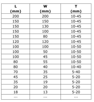 Usual size of Carbide Plates