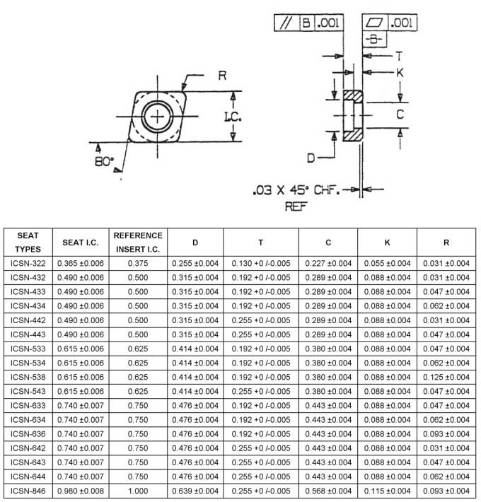 80°rhombic seats for indexable 80°rhombic inserts, Style CNMA & CNMG for negative rake holders