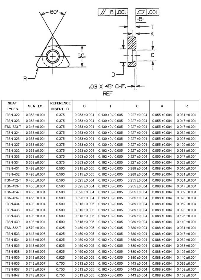 Triangular seats for indexable triangular inserts, Style TNMA & TNMG for negative rake holders